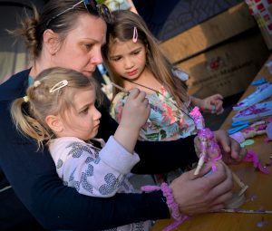Les parents et les enfants se retrouvent autour d’une activité manuelle.
