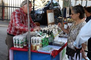 Plusieurs vendeurs exposent leurs créations et leurs produits.
