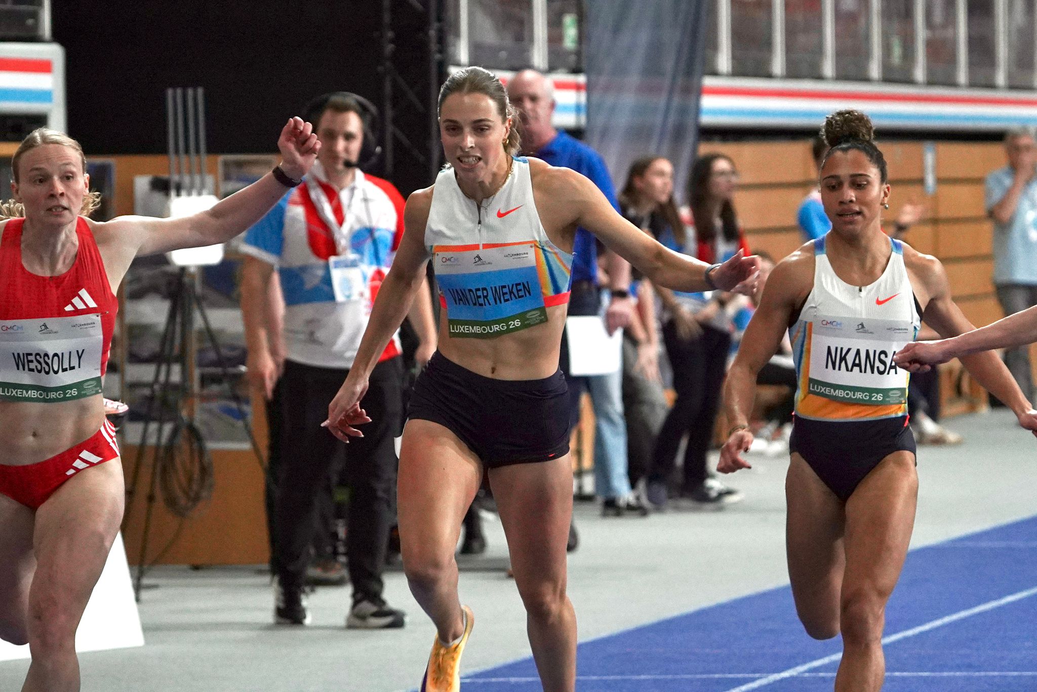C’est le premier très grand moment, côté luxembourgeois, de ce CMMC-2026. Grande favorite, Patrizia Van der Weken reste un peu dans les starts avant de se détacher et de l’emporter. Comme lors de la série, elle est chronométrée en 7″16, temps qui sera à nouveau corrigé en 7″14, meilleure performance mondiale de l’année à nouveau égaliée : «C’est tout à fait correct. J’ai encore les jambes un peu lourdes. On a bien bossé depuis octobre. Ca va venir au fur et à mesure», confie la désormais quadruple vainqueur d’affilée sur 60 m sur le CMCM.