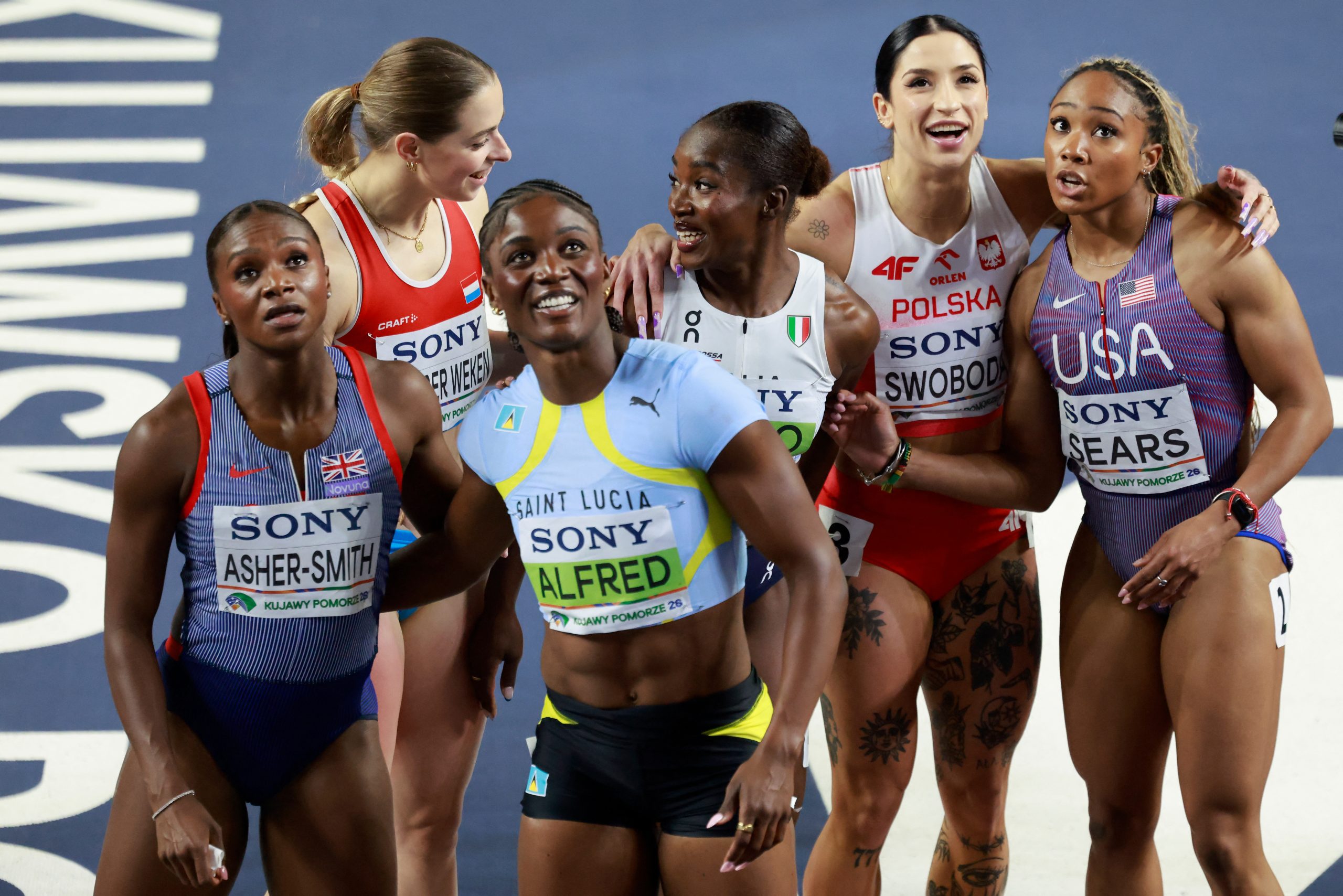Quand le coup de feu part, les filles se jettent à l’assaut de la ligne d’arrivée. Tout e monde est dans un mouchoir de poche et c’est une photo finish générale qui est d’abord annoncée. Mais rapidement, c’est le nom de Zaynab Dosso qu’on retrouve tout en haut. En 7″00, elle devant de trois centièmes Jacious Sears deuxième et Julien Alfred, troisième, créditées toutes les deux de 7″03. Patrizia Van der Weken, de son côté, se classe 8e en 7″10 après avoir complètement raté sa mise en action. Au pire moment.