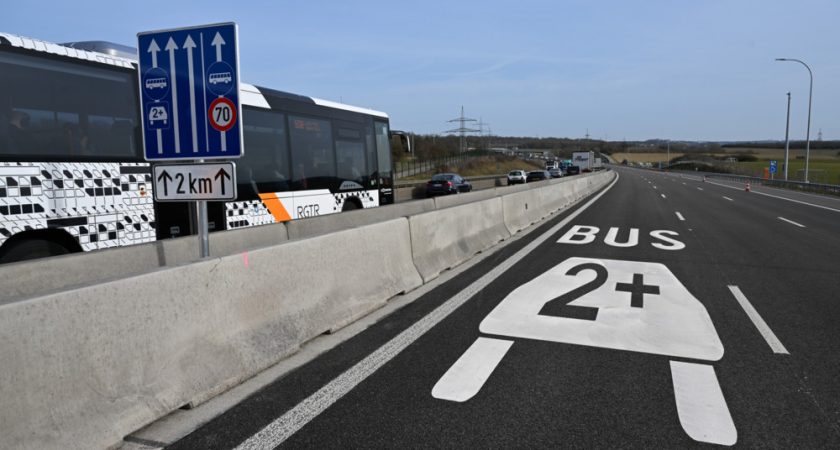 – La voie réservée aux bus, aménagée sur la bande d’arrêt d’urgence entre l’aire de Berchem et la croix de Gasperich et où la vitesse maximale autorisée est de 70 km/h, ne fonctionnera plus en continu, mais sera accessible aux autobus exclusivement aux heures de pointe entre 6 heures et 10 heures.