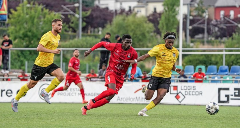 C’est un moment suspendu dont les 850 spectateurs du Parc des sports d’Oberkorn se souviendront parce qu’il est finalement assez rare, en Division nationale, d’entendre un stade gronder pour autre chose qu’un but ou une grosse faute. On joue la 36e minute de la reprise, c’est un FCD03 – Bissen et Boris Mfoumou vient, enfin, de commencer à écrire son histoire personnelle au Grand-Duché.