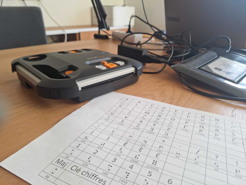 Pour pouvoir lire des ouvrages, chaque personne déficiente visuelle dispose d’un outil adapté à ses besoins. (Photo : emilie dias)