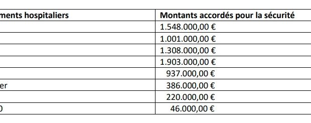 «Aucune dotation spécifique en personnel n’est prévue pour la sécurité puisque les établissements hospitaliers concluent des contrats avec des sociétés prestant lesdits services», indique Martine Deprez. Pour autant, les dotations financières pour la sécurité dans les centres hospitaliers ont régulièrement augmenté. Voici à combien elles s’élèvent en 2025 :