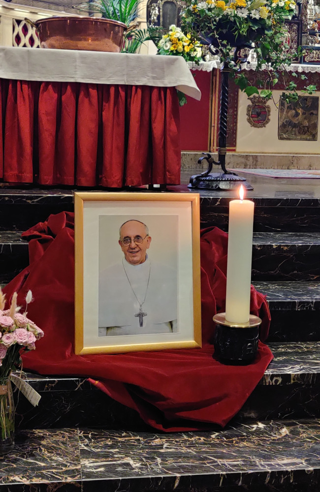 Même ressentiment pour Nicole qui ne manquerait pour rien au monde cette cérémonie. «Je viens comme toujours pour la messe, mais oui, on y pensait, surtout que son portait a été déposé. Au fond, j’ai été surprise et attristée comme tout le monde», relate-t-elle avant de répéter que le pape François était quelqu’un d’ouvert, qu’il était considéré comme proche des gens. Pour Marcel aussi, l’heure est au recueillement. «C’est triste. On savait qu’il était fatigué, on s’y attendait, mais ça fait un choc, surtout en cette période de Pâques», confesse ce Luxembourgeois. Sous sa casquette, l’homme de 73 ans rappelle aussi la venue marquante du souverain pontife au Luxembourg. «Quand il était venu, on avait pu le voir quand il passait avenue de la Liberté, c’était très fort comme moment et très important. Et maintenant, ça l’est encore plus.»