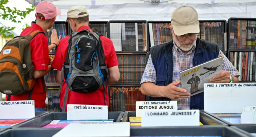 Au sec sous une bâche, Lionel, un Gaumais, indique être tombé dans le neuvième art quand il était petit. Depuis il écume les festivals et les bourses aux livres à la recherche de belles prises. «Je viens ici presque chaque année. Mon but est de trouver des albums que je conserve dans ma collection ou que j’utilise comme monnaie d’échange», explique le quinquagénaire, «fan des classiques». Sylvie, sa compagne, rouspète un peu. «Tu parles! Il y a des albums et des romans graphiques partout dans la maison. Il n’en échange pas tant que ça et à la longue, ça devient un budget.» Mais quand on aime, on ne compte pas. «D’où l’idée des échanges et des albums d’occasion», rétorque Lionel.