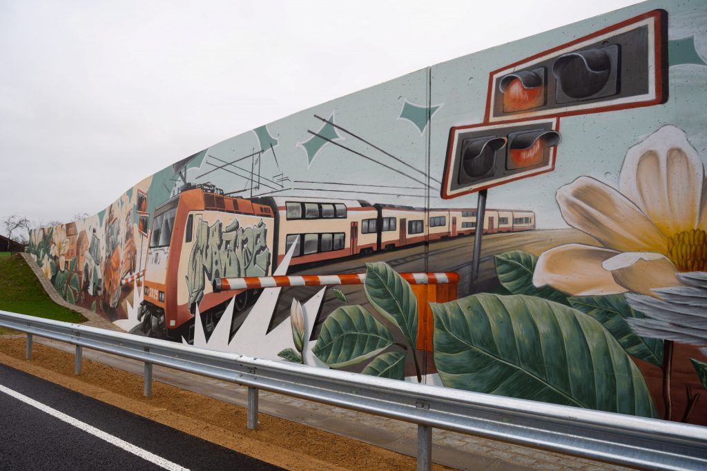 Le passage à niveau, bien qu’il n’existera plus dès mardi, restera dans les mémoires grâce à cette fresque. (Photo : mmtp)