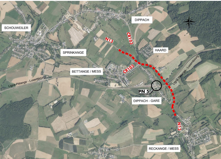 Prévu dans le cadre du projet de mise à deux voies de la ligne de chemin de fer Pétange-Luxembourg, ce contournement avait un but bien précis. «L’idée principale, rappelle Laurent Koob, c’était la suppression du passage à niveau PN5» sur la route nationale 13.