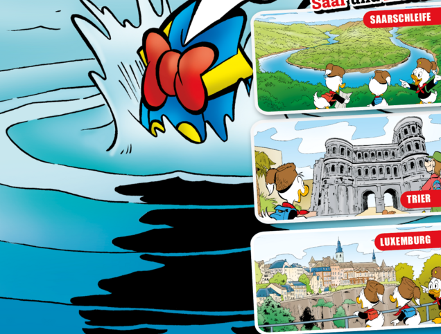 Dans cette nouvelle histoire intitulée Le Secret de la carte et publiée dans le numéro 15/20245 du magazine Mickey Mouse, Donald et ses neveux Riri, Fifi et Loulou (Tick, Trick et Track en allemand) partent pour un périple mouvementé à travers la Sarre, Trèves et le Luxembourg.