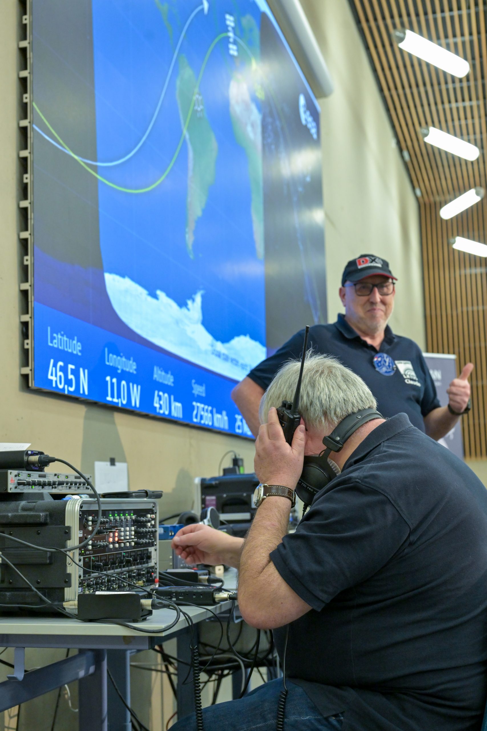 «Appel général, appel général», répète le fidèle radioamateur, membre de l’association de Kayldall depuis plus de 40 ans. L’exercice n’est pas une première pour lui, mais l’enjeu, cette fois, est de taille. Les fronts perlent, les smartphones sont levés, braqués vers la scène... Tous sont prêts à capturer ce qui pourrait bien devenir un «moment historique». Pour le lycée Vauban comme pour le Luxembourg.