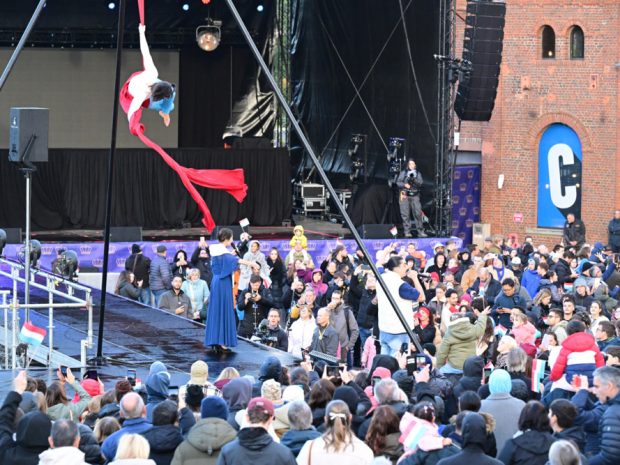 Pour sa quatrième étape de la journée, le couple grand-ducal s’est rendu à Dudelange pour assister à un grand spectacle spécialement conçu pour l’occasion. Du côté du public, l’ambiance était à la fête populaire.