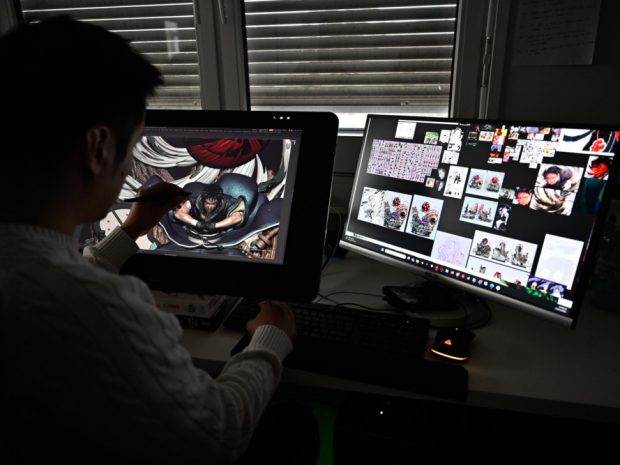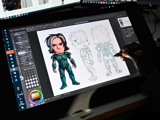 Dans la pièce d’à côté, Saesa Glas, artistic manager, veille quant à elle au bon déroulement de chaque phase de conception. Dans son bureau tapissé de croquis, de dessins 2D et 3D se trouvent les premiers tests de statues ainsi qu’une grande frise reprenant toutes les étapes de production. «Je dois vérifier que les dessins sont corrects et qu’ils seront possibles à réaliser.» Elle s’assure aussi que la taille des personnages est cohérente entre eux et par rapport à leur apparence dans le manga. Enfin, elle fait le lien entre les artistes 2D et ceux qui vont s’occuper de transposer leur travail en 3D. C’est notamment le rôle de Patrick Tran, 3D sculptor. Sur sa tablette, il donne forme à la figurine grâce à un logiciel qui imite la sculpture traditionnelle. «ZBrush est utilisé dans le cinéma et le jeu vidéo. Il me permet de partir d’une forme très simple pour créer la base du personnage.»