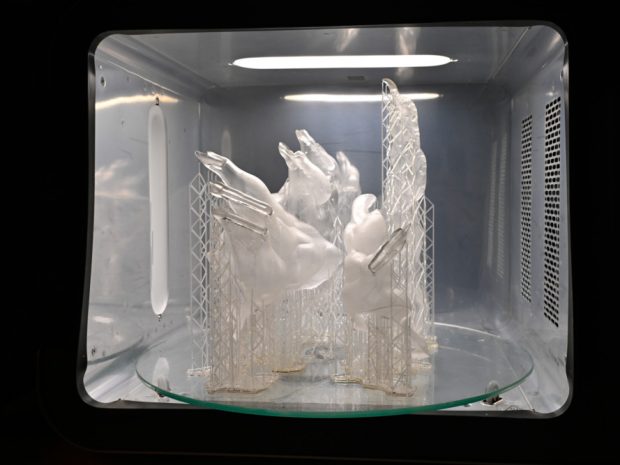 Grâce à ses très nombreuses imprimantes 3D, Tsume peut produire une version size print de la statue. «En fonction de la taille et de la résine utilisée, cela peut prendre plus ou moins de temps, précise Maxime Roudaut, prototyping manager. La plus longue impression a duré une semaine. On croisait les doigts pour ne pas avoir de problèmes!» La figurine est alors vérifiée sous toutes les coutures avant d’être envoyée à la dernière étape : la peinture.