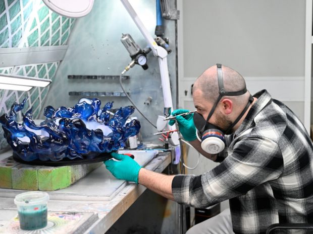 Au pinceau ou à l’aérographe, il est là pour donner un véritable relief et une personnalité à la statue. «Quand on fait de la peinture, on met en scène. On joue beaucoup avec la lumière et les ombres.» Le processus peut lui aussi s’avérer assez long selon la complexité du produit final, de l’ordre de deux à six semaines. Une fois la statue terminée, une dernière validation permet de lancer enfin la production.