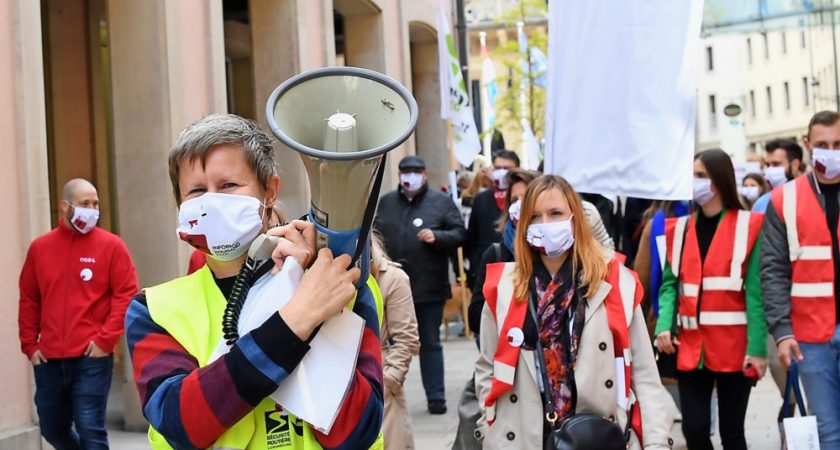 Une manifestation en 2021 de l’Association luxembourgeoise des journalistes professionnels (ALJP) pour le droit à l'information. (Photo : archives lq/hervé montaigu)
