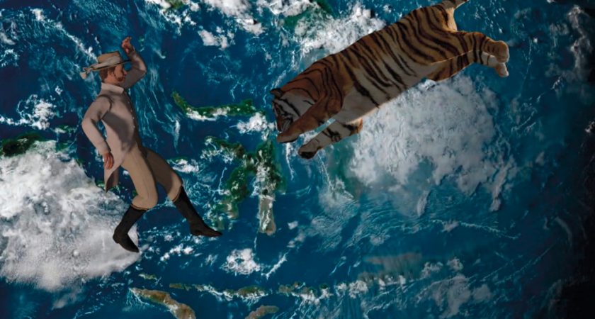 Mais il suffit d’une seule illustration, datée du XIXe siècle, pour laisser entendre ce pan d’histoire que raconte aussi l’animal : l’image de l’architecte irlandais George D. Coleman dans la jungle singapourienne, à l’époque de la colonisation, surpris par une attaque de tigre. Avec la superbe installation One or Several Tigers (2017), qui mélange animation numérique et «wayang kulit» – une forme de théâtre d’ombres indonésien –, Ho Tzu Nyen réinvente la rencontre, par projections interposées, de Coleman et du tigre, dans un duo chanté plein de poésie mélancolique, et fait s’entrechoquer rationalité et spiritualité, esprit de conquête et force sauvage.