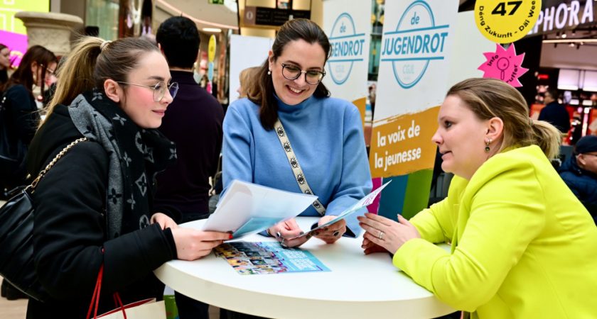 Le temps d’une journée, hier, le centre commercial de la Cloche d’or avait des allures de salon de recrutement à l’occasion de la 9e édition de la foire «Deng Zukunft – Däi Wee». Répartie à différents endroits de la galerie, une cinquantaine de stands d’informations était installée afin de fournir des conseils et des pistes de réflexion pour son projet professionnel. De quoi arracher certains lycéens de l’insouciance et de la tranquillité de leurs vacances de Carnaval.