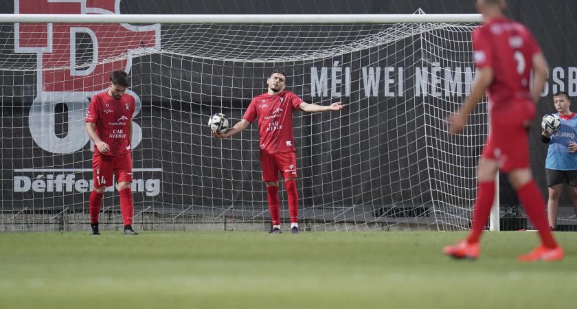 En s’entêtant à vouloir protéger un ballon qui n’allait pas sortir, Lempereur se l’est fait chiper par Balaj, mais c’est toute l’arrière-garde differdangeoise qui a eu un train de retard dans la continuité de l’action. Balaj et Besnik Krasniqi ont eu tout le loisir de combiner côté droit, puis Manaj, trouvé entre les jambes de Brusco, tout le temps de contrôler dans la surface et trouver le petit filet opposé, malgré l’angle fermé (0-1, 4e).