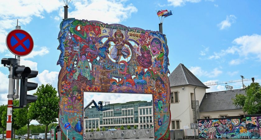 Le panneau de la Schueberfouer a déjà été installé à l'entrée du glacis.