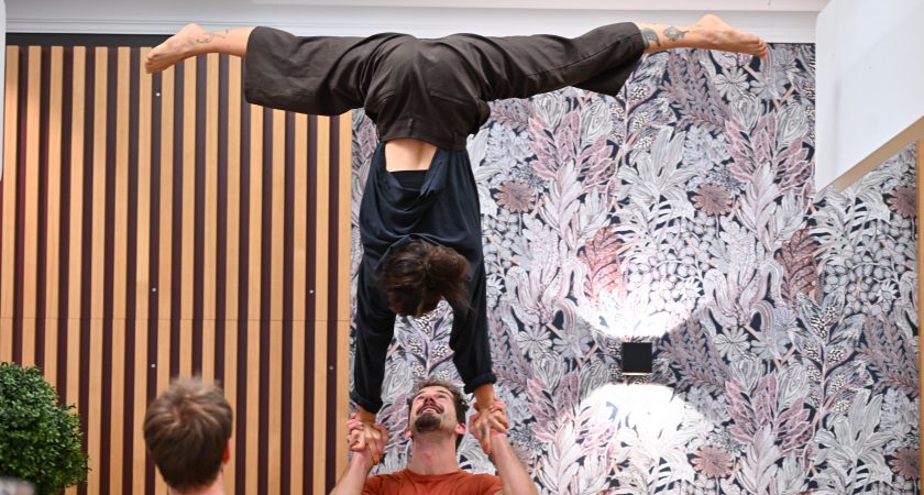 Dans le réfectoire de la résidence, les artistes de Be Flat réinventent le cirque avec un spectacle composé à 75 % d’improvisation.