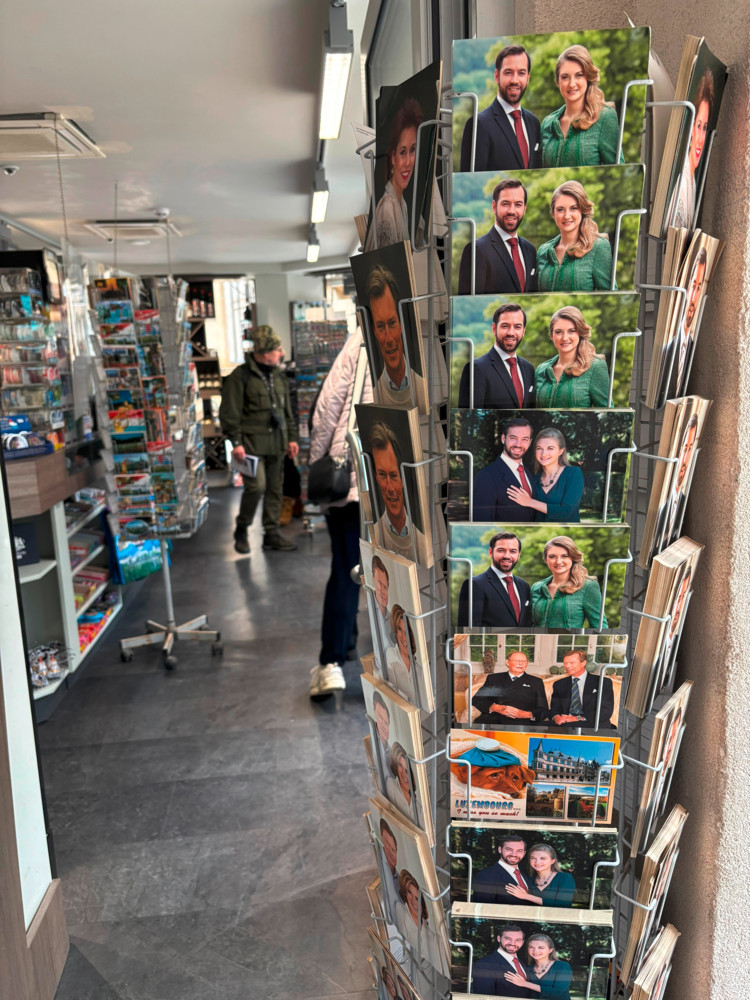À l’entrée déjà, des dizaines de cartes postales arborant la photo officielle du mariage de Guillaume et Stéphanie (prise il y a maintenant treize ans) accueillent les curieux, aux côtés de photos d’Henri et de Maria Teresa ou encore du Grand-Duc Jean.