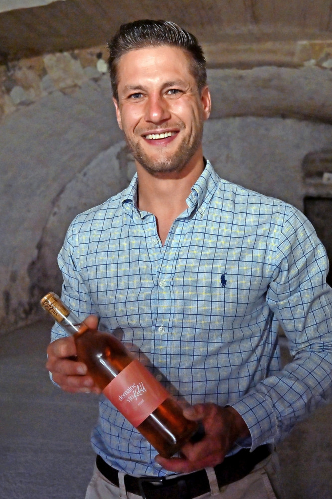 Sur la liste des participants se trouve d’ailleurs un petit nouveau qui compte bien faire sa publicité : le domaine VitiKohll à Wintrange. Situé dans le bourg du village, l’établissement a sorti les tables et les chaises afin de faire connaître aux visiteurs sa première production de pinot et de rosé réalisée en 2024. Cependant, le nom Kholl n’a rien de nouveau dans le coin puisqu’il s’agit d’un domaine familial lancé par Albert, le grand-père de l’actuel gérant Marc. À 34 ans, ce dernier a pris la suite de son père Joseph, décédé en 2004, et a décidé de renouer avec la production, un temps abandonné au profit de la vente.