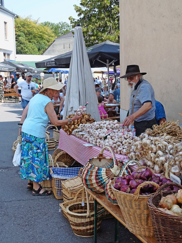 Parmi la foule qui attend de recevoir un morceau de pain et un verre de crémant offerts à la sortie de l’église, un couple de touristes s’interroge : «Qu’est-ce que c’est, ces bouquets?» Arrivés là grâce aux suggestions d’internet, ces deux touristes français restent étonnés devant ces gerbes pour le moins originales, mais qui partent comme des petits pains. Après éclaircissements, la Lilloise est séduite et en achète deux. «Je suis aussi chrétienne, mais je n’avais jamais vu une cérémonie comme celle-là, c’est super», déclare-t-elle, tandis que son compagnon, verre à la main, loue cette «célébration du terroir».