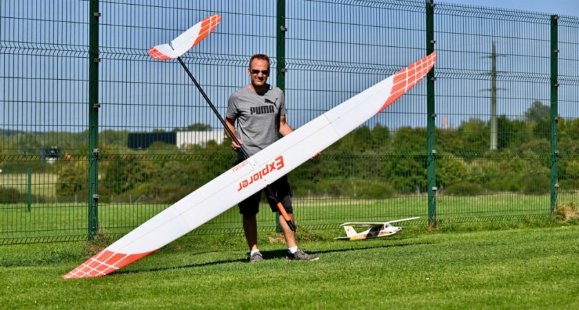 Marc Buttel et son planeur de compétition : un modèle de 4 mètres à plusieurs milliers d’euros, en fibres de carbone. (Photos : alain rischard)