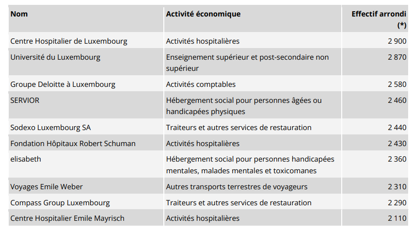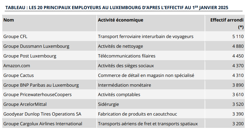 Alors que mercredi, l’Adem annonçait que le marché du travail luxembourgeois tourne en sous-régime, le Statec publie, ce jeudi, la liste des principaux employeurs au Grand-Duché. Cette liste a été établie d’après l’effectif au 1er janvier 2025, ventilée selon la taille et la branche d’activité économique, et sur la base d’une enquête annuelle non obligatoire auprès des entreprises et des groupes d’entreprises au Luxembourg occupant au moins 90 personnes au 1er janvier 2025. Au total, 387 employeurs y figurent, issus des activités de l’industrie, de la construction, du commerce et de la plupart des activités de services.