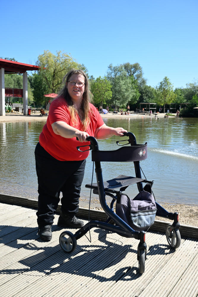 Confortablement installée, Justine admire le paysage autour d’elle et affiche un large sourire : «Je suis si heureuse de pouvoir partager ça. D’habitude, quand il se baigne, je l’attends sur la rive. Ici, la dame m’a très bien aidée pour entrer dans l’eau. C’est une bonne surprise! On reviendra en famille, c’est sûr», se réjouit-elle.