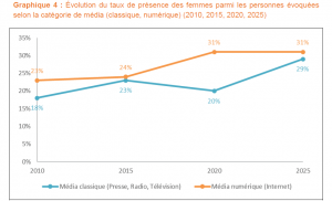 Leur nombre est tout de même en constante progression. Pour la première édition du GMMP, en 2010, les femmes ne représentaient que 20% des personnes évoquées. Tandis qu’en 2015 et 2020, elles étaient respectivement 24% et 25%.