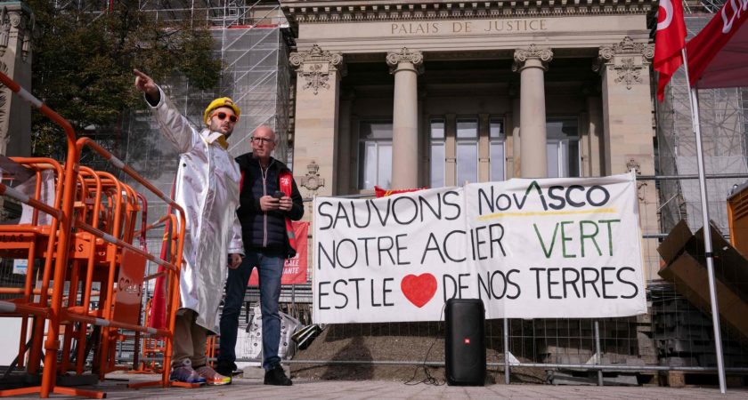 Le directeur général de Métal Blanc, Julien Baillon, a été interpellé par des salariés à sa sortie du tribunal, où la CGT avait installé une tente et posé des banderoles sur lesquelles on pouvait lire « Novasco, l’acier décarboné qu’on veut garder ».