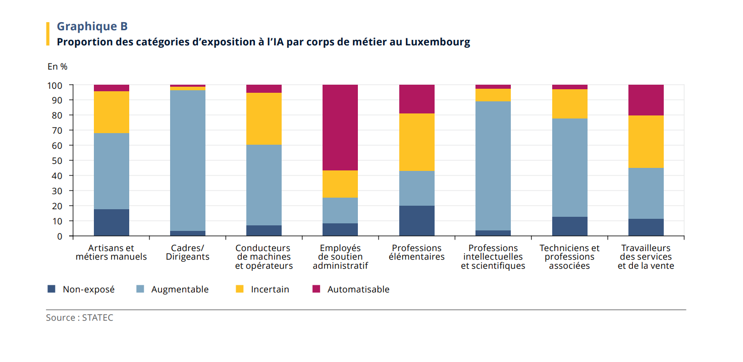 Métiers exposés à l’IA au Luxembourg (Source : Statec, 2025)