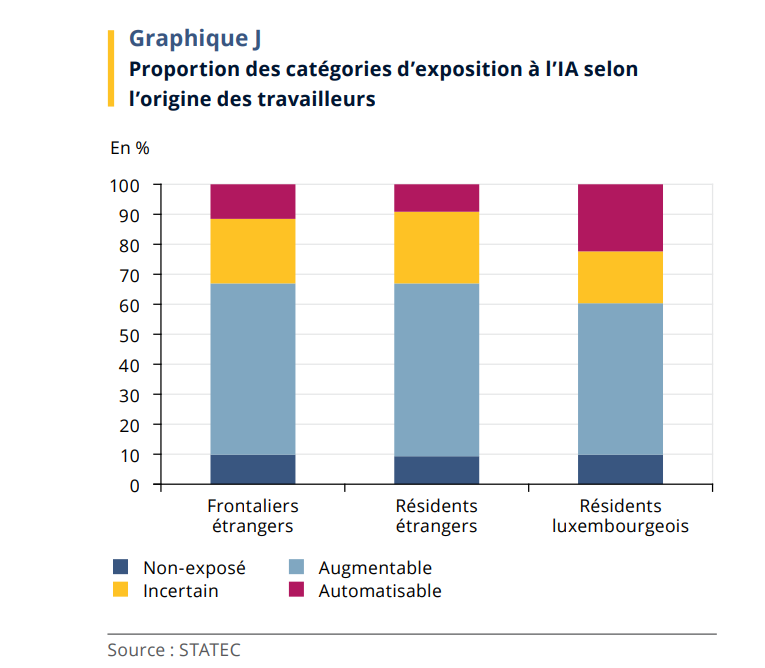 Exposition à l’IA selon l’origine des travailleurs. (Source : Statec, 2025)