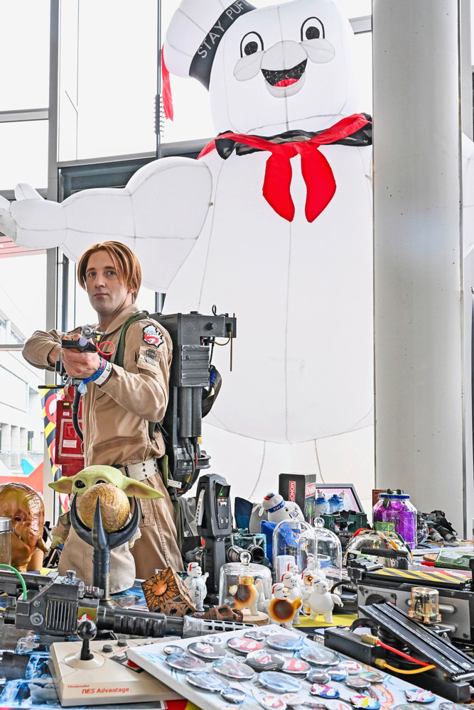 Dès l’entrée, le public pouvait trouver le stand de SOS Fantômes, tenu par trois passionnés. «Nous sommes un collectif de douze personnes. On est comme une famille, d’ailleurs ma propre famille en fait partie!» s’exclame André, l’un des chasseurs de fantômes. Vêtu de l’inoubliable combinaison beige, le Luxembourgeois de 36 ans ne se lasse pas de faire découvrir ses objets de collection. Monopoly Ghostbusters, répliques des pistolets-aspirateurs, figurines de fantômes : le fan-club propose un large panel d’objets dérivés. «Cela va faire neuf ans que nous venons à la LuxCon. Pour nous, c’est important de montrer notre passion. Notre but est aussi de faire découvrir aux jeunes et qu’ils aient envie de revoir les anciens films de la franchise», confie-t-il.