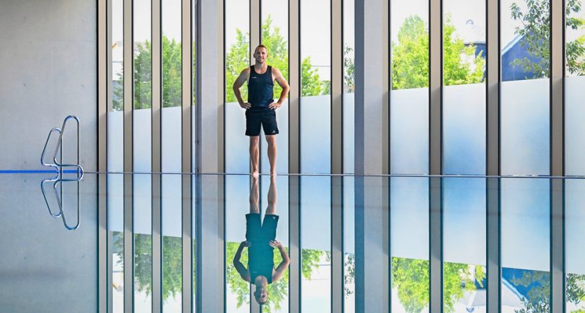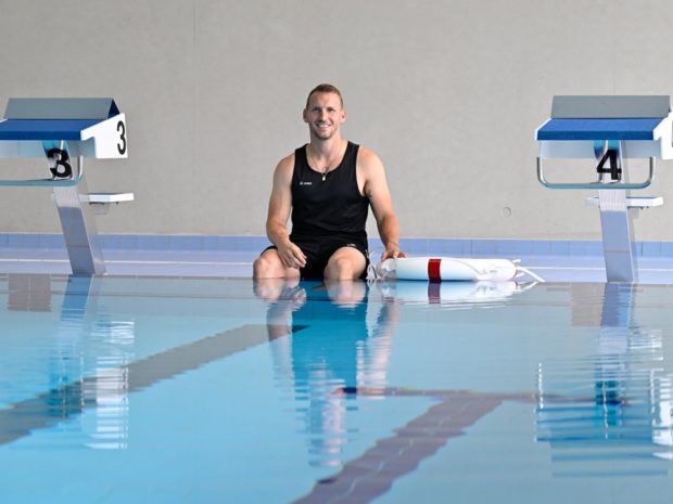 Yann Schiltz posant ici dans le bassin intérieur du centre sportif Strutzbierg. (Photos : julien garroy)
