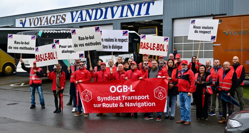 Un piquet de protestation a été organisé mercredi par le syndicat OGBL, section Transport sur route et navigation, au Triangle vert à Ellange, juste devant les locaux de l’entreprise Vandivinit. Une trentaine de personnes arborant la chasuble ou la veste rouge du syndicat ont brandi banderoles et pancartes. Les salariés ont pointé du doigt le manque de dialogue de la direction.