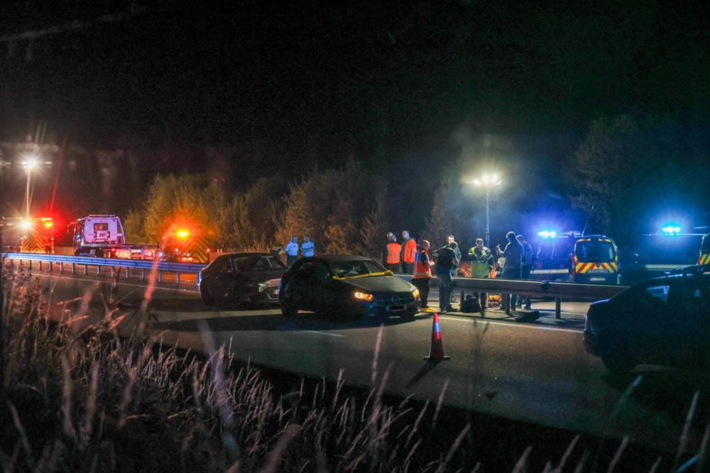 La voiture des deux fuyards s’est arrêtée sur la départementale, transformée en deux fois deux voies. Les suspects ont pris la fuite à pied et l’un d’eux a enjambé la glissière de sécurité, suivi par le policier belge. Tous deux ont été percutés par un véhicule. Le second suspect poursuivi a finalement été arrêté. Il s’est avéré que, lors de cette course poursuite, 2,8 kilos de cannabis ont été jetés par la fenêtre du véhicule des fuyards.