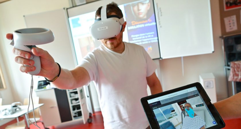Depuis la rentrée 2024, les étudiants aides-soignants et infirmiers ont vu leur cursus s’enrichir d’une nouvelle série d’exercices pratiques réalisés grâce à la VR. Ceux-ci les plongent dans différents scénarios au cours desquels ils doivent appliquer tout ce qu’ils ont appris et réagir de la bonne manière pour aider leur patient.
