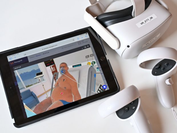 Alité dans sa chambre d’hôpital, Earl Jenkins peine à respirer. Devant le visage inquiet de la femme du patient, l’aide-soignant regarde les informations à sa disposition, effectue une série de gestes précis (prise de tension, application d’un masque à oxygène, injections…), tout en expliquant au malade et à son épouse ce qu’il est en train de faire. Au bout de quelques minutes, les constantes remontent. Earl Jenkins semble tiré d’affaire et l’aide-soignant peut enlever son casque de réalité virtuelle (VR). Car toute cette procédure n’était en fait qu’un exercice lors d’une formation proposée par l’École nationale de santé du Luxembourg (ENSA).