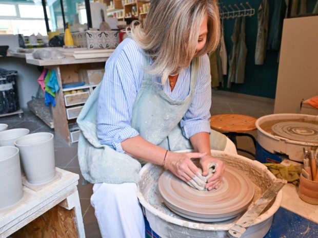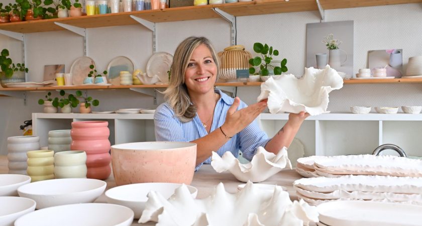 Sa vie a néanmoins pris un autre tournant il y a six ans, lorsqu’elle a quitté la gestion de patrimoine au profit de sa passion d’enfance : la céramique. «Toute petite déjà, j’adorais la poterie et après 15 ans de finance, je voulais un métier avec plus de sens et plus créatif.» Pour ce faire, elle se forme dans une école d’art à Paris et obtient un CAP en tournage céramique, «mon diplôme le plus bas mais le plus symbolique», et qu’elle expose fièrement.