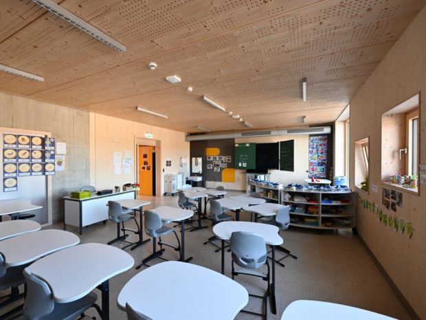 C’est là que se dresse le tout nouveau bâtiment à ossature bois, construit de 2022 à 2024 et ouvert depuis septembre dernier pour près de 130 enfants du cycle 2.