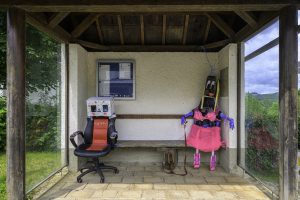 La rue Principale qui descend tout le long du village convient bien en effet au concept si particulier du MarionetteFestival. Ici, pas de salle de spectacle ou de théâtre, ce sont les habitants qui ouvrent leurs maisons pour accueillir artistes et public. Les portes grandes ouvertes, garages et granges se transforment peu à peu au rythme du va-et-vient des six techniciens du festival. Une fois les entrées de lumière recouvertes, la scène et les gradins installés ainsi que les lumières branchées, un petit théâtre de fortune apparaît. «Nous avons douze salles qui peuvent accueillir jusqu’à cent personnes.»