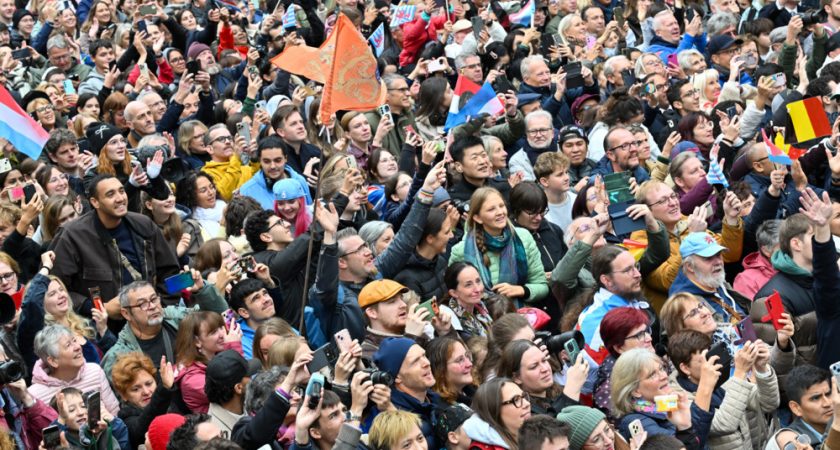 Dès la montée dans la navette qui relie la gare routière au stade Op Flohr où se déroule la première sortie officielle du Grand-Duc Guillaume, l’effervescence est là. Les passagers sont serrés comme dans les transports en commun aux heures de pointe. À la sortie du véhicule, nous rencontrons Stéphanie accompagnée par son mari et leurs deux enfants.