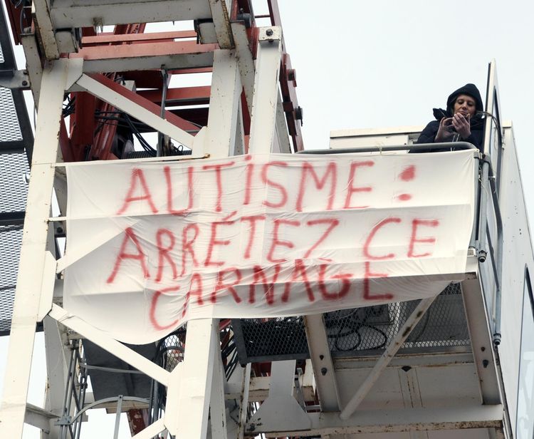 Un mère d'enfant autiste lors d'un «happening» dans le centre de Toulouse en mars. (Photo : AFP)