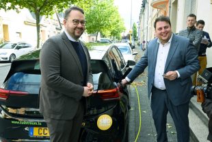 Une Volkswagen ID.3 électrique aux couleurs de Sudstroum s’avance dans la rue d’Ehlerange, à Esch-sur-Alzette. Au volant, le bourgmestre de la commune Christian Weis, accompagné de son échevin à la Mobilité Meris Sehovic, s’arrête à hauteur ...