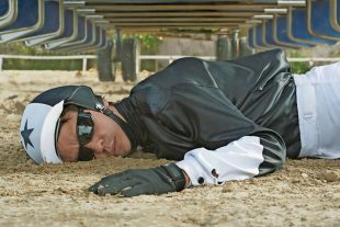 Sa présence caméléonienne enveloppant tous les plans du film, Remo Manfredini (Nahuel Pérez Biscayart) est, dans sa première moitié, camouflé sous sa tenue de jockey : bombe noire et blanche, lunettes de protection et gilet ...