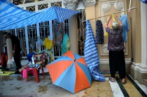 Un Thaïlandais accusé d'avoir volé quelque 4.000 petites culottes et soutiens-gorges féminins sur des fils à linge a été présenté par la police à la presse le 16 mars 2016. (Photo : AFP)