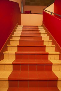 L'escalier rouge vif... Toute une ambiance dès l'entrée.