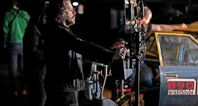 Edgar Wright sur le tournage de The Running Man. (Photo : ross ferguson/paramount)